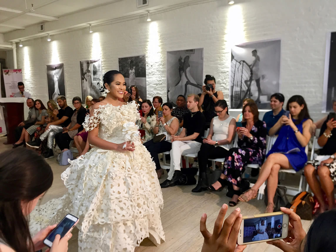 The finale event was hosted at a sponsor Peerspace location in New York city. Like each contest season, contestants were asked to create a wedding gown and headpiece using only the sponsor toilet paper, tape, glue and they are permitted to sew.